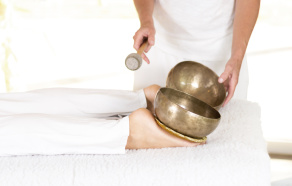 Die sanften Klangschwingungen einer Klangschale verwöhnen bei einer Massage